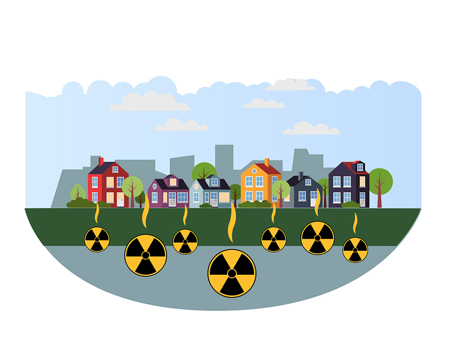 Radon is a naturally occurring colourless & odourless radioactive gas, which naturally occurs in rock and soil.